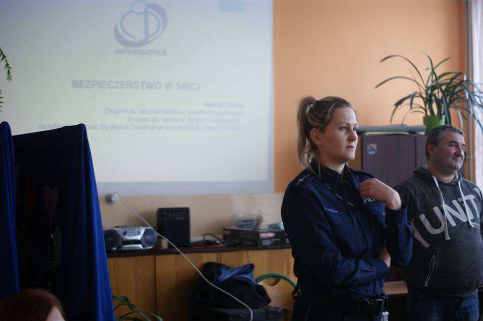 26.02.2018 r. w ramach projektu Cyfrowobezpieczni.pl odbyło się spotkanie z przedstawicielem KMP aspirant Moniką Śliwińską oraz edukatorem z Urzędu Miejskiego w Jaworznie Marcinem Zemłą – „ Twoje dane, twoja sprawa”.